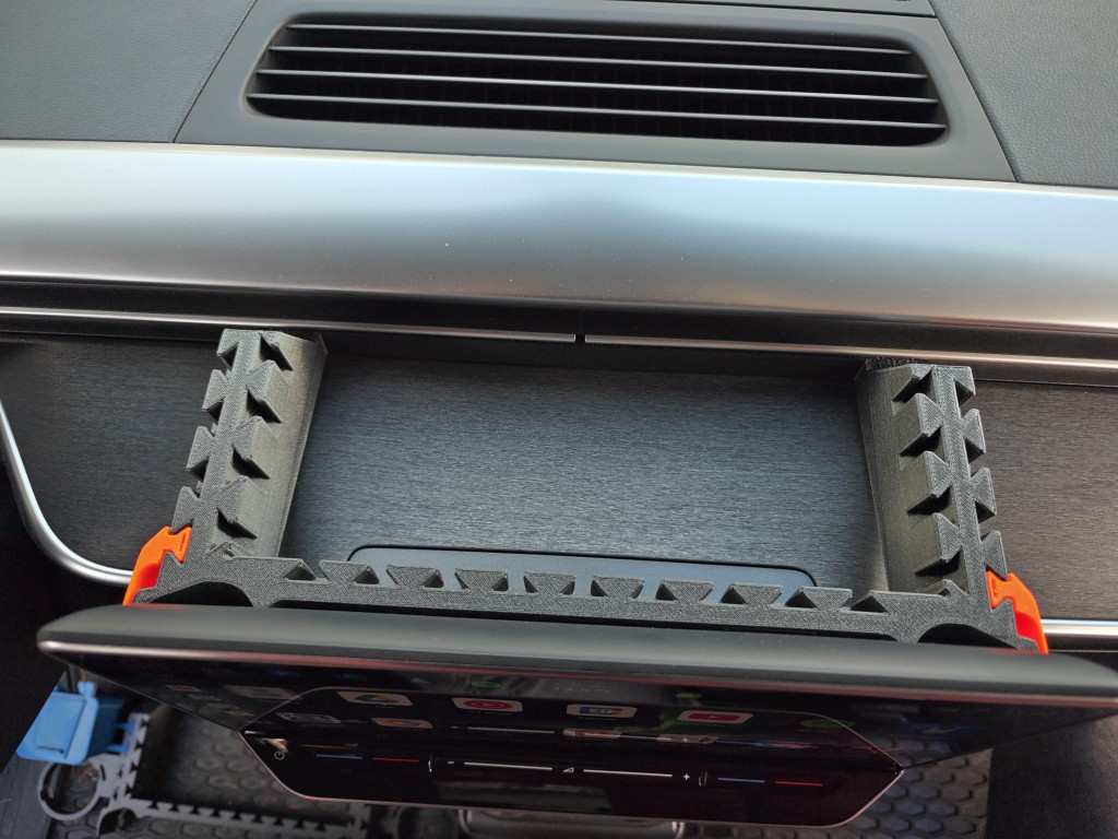 This small clip is ideal for storing your current parking ticket right next to the steering wheel, either on the right or left side of the display. (Longer version ONLY for 12,9" display)