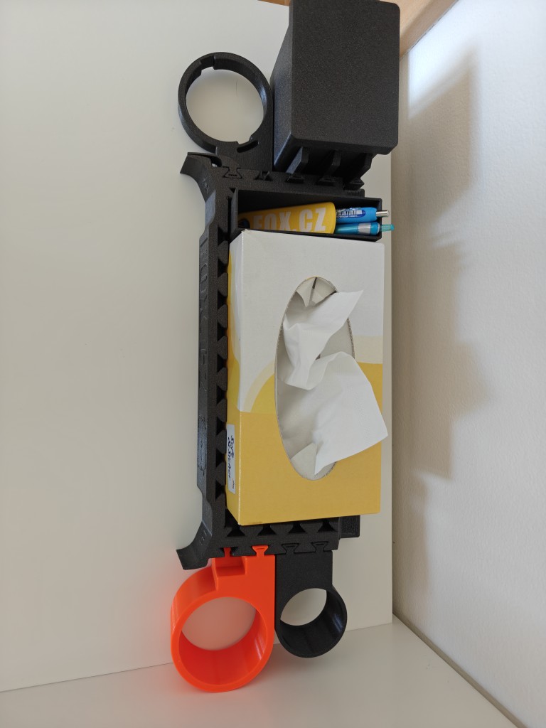 This holder is designed specifically for the Outin Nano portable coffee maker, or anything larger. The inner diameter of the holder has 68mm a very secure attachment with three dovetails. Designed for right side, but you can easy rotate it in slicer in X axes and change it for left side.