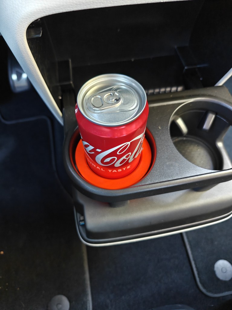 Adapter that requires a cup holder for use, into which it is inserted to create the possibility of inserting small 0.33 l cans or drinks of the same size. It can also be used as an adapter for drink holders in the center panel of the car under the display for a more secure hold on smaller cans.